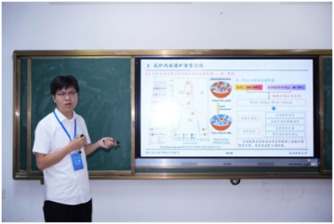 ▲中南大學陳鳳作題為“釩鈦磁鐵礦氣基豎爐還原粉化研究”的報告