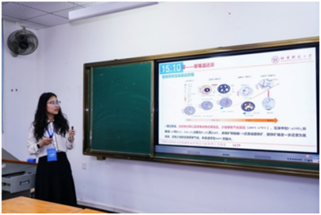 ▲華北理工大學郤亞娜作題為“豎爐氫冶金噴氧段氣體的燃燒與改質”的報告