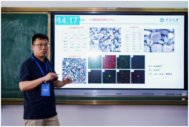 ▲貴州大學雷卓為作題為“鉻鐵礦、磁鐵礦、紅土鎳礦在氧化焙燒過程中的固結機理介紹”的報告