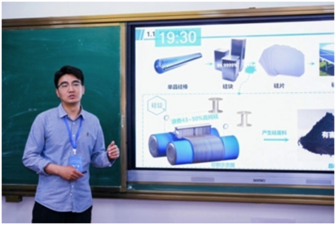 ▲寧夏大學陳廣玉作題為“光伏晶矽切割廢料資源化循環利用:低硼晶矽及Fe/Al-Si合金的製備”的報告