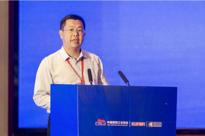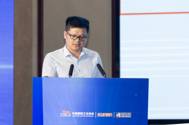 圖為中冶賽迪重慶環境谘詢有限公司運營與係統優化部副部長劉輝《工藝築基・數智賦能 — 鋼鐵企業能源轉型新範式》主題報告