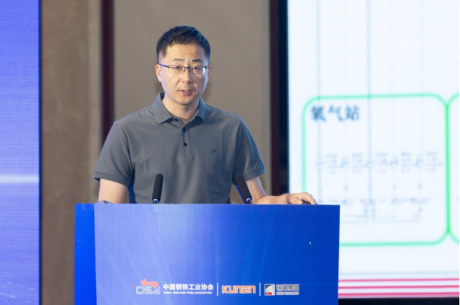 圖為中冶京誠工程技術有限公司智能電網部副主任張強作《數智技術賦能鋼鐵企業電網節能降碳新路徑》主題報告