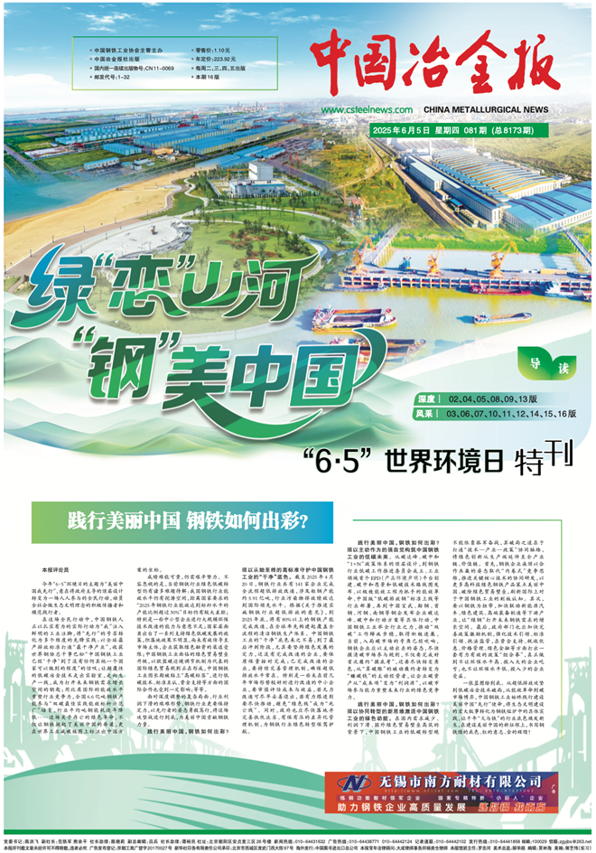 一張藍圖繪到底。從超低排放攻堅到低碳冶金技術破局,從能效革命到碳市場博弈,中國鋼鐵工業始終踐行建設美麗中國“先行”使命,將生態文明建設的宏大敘事轉化為鋼鐵熔爐中的具體實踐,讓千年“火與鐵”的行業底色煥發新生,在建設美麗中國的新征程上,書寫鋼鐵綠的底色、紅的意誌、金的輝煌!
