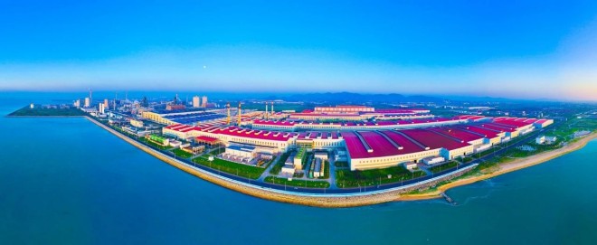 圖為2024年4月11日寶鋼股份湛江鋼鐵零碳高等級薄鋼板工廠項目正式開工建設現場。(梁青鬆 攝)