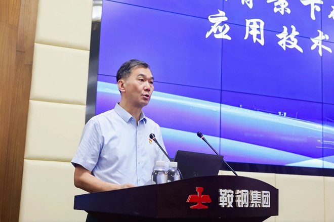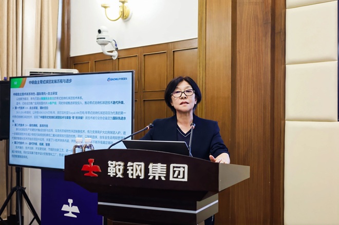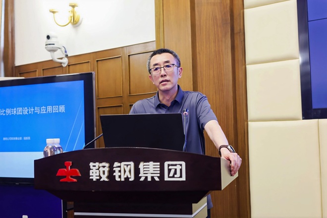 圖為鞍山鋼鐵股份煉鐵總廠廠長、黨委副書記蔣益作《高比例球團礦經驗》應用分享