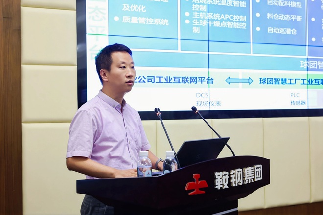 圖為北京中宏聯公司總經理助理李丹作《鞍礦帶式球團數智化生態》主題報告
