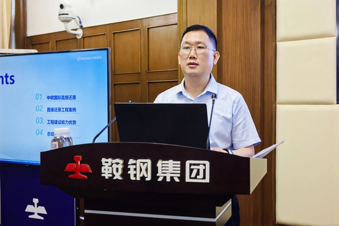 圖為中鋼設備有限公司低碳冶金與基礎能源設施部副總工程師付豔鵬作《中鋼國際氫基豎爐直接還原技術與實踐》主題報告