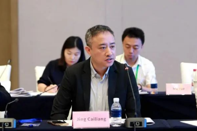 圖為首鋼國際鋼材貿易事業部熱軋室主任景財良交流發言