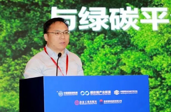 劉冬介紹了螺紋鋼產品發展現狀、螺紋鋼出口各國認證製度簡介,並分享了關於螺紋鋼企業綠色低碳發展路徑的思考。徐少兵做《建築用鋼及鋼結構 PCR 2.0與綠碳平台建設助力高端建築綠色低碳發展》主題報告並指出,在全球碳中和背景下,建築行業加速綠色轉型,采購低碳排放鋼材成為關鍵路徑。陝鋼集團研究總院副院長許宏安、南京淨環熱冶金工程有限公司副總經理於宏朋分別做《綠色智能直軋技術裝備產業化相關主題》《趁熱打鐵——長材高溫直軋技術變革》主題報告。