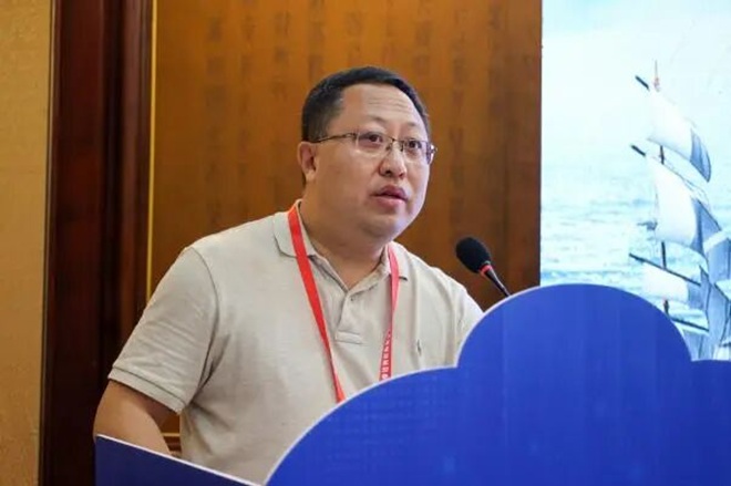 圖為馬欣伯做題為《裝配式鋼結構建築發展機遇與思考》的主旨報告
