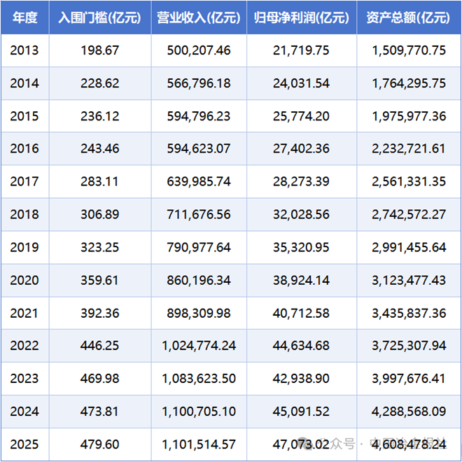據悉,“2025中國企業500強”的入圍門檻實現23連升,達479.60億元,較上年提高5.79億元;實現營業收入110.15萬億元,較上年有所增加;實現歸屬母公司淨利潤4.71萬億元,增長4.39%。位列前10位的企業是:國家電網有限公司、中國石油天然氣集團有限公司、中國石油化工集團有限公司、中國建築股份有限公司、中國工商銀行股份有限公司、中國農業銀行股份有限公司、中國建設銀行股份有限公司、中國銀行股份有限公司、中國鐵路工程集團有限公司、京東集團股份有限公司。