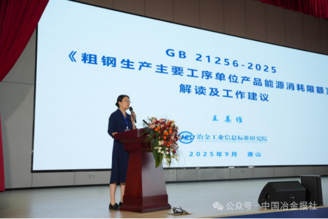 王薑維作《GB 21256-2025<粗鋼生產主要工序單位產品能源消耗限額>解讀及工作建議》專題報告,詳細解讀了整合修訂後的強製性新國標的技術要求。她建議,鋼鐵企業短期應盡快對標分級、聚焦合規改造,中期要構建技術組合、升級為數字化能源管理中心並推動極致能源降本,長期需探索綠色低碳工藝、推動技術創新與供應鏈管理優化。