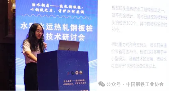 歐領特(上海)鋼板樁租賃有限公司項目銷售負責人薛源(三峽大學水工結構碩士)則以《鋼板樁在船塢工程的應用》為題,梳理船塢建設中鋼板樁的適配場景與施工要點。