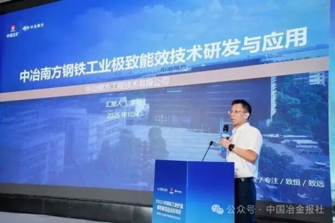 圖為中冶南方工程技術有限公司李智作題為《中冶南方鋼鐵工業極致能效技術研發與應用》報告