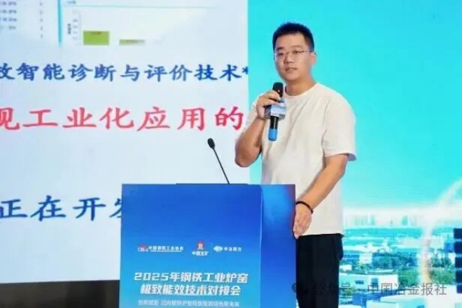 圖為北京首鋼國際工程技術有限公司陳迪安作題為《軋鋼加熱爐綜合節能減排與質量提升耦合技術研究與應用實踐》報告