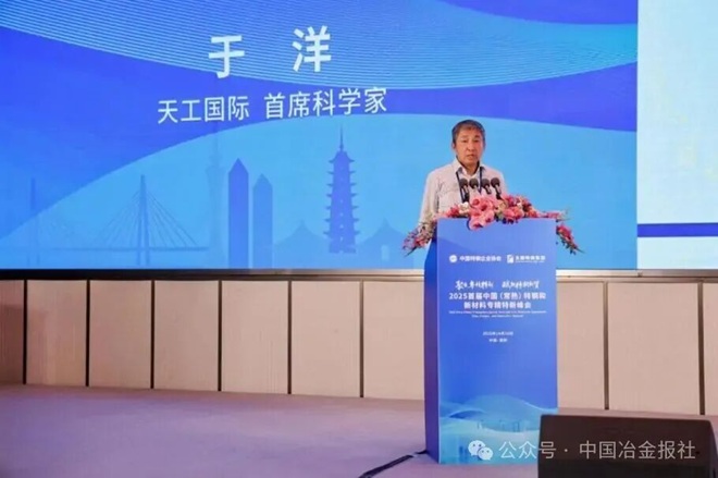 寶武特冶首席科學家馬天軍作題為《核電、能源及先進交通關鍵材料的研發與應用》的報告,米永旺作題為《篤定踐行專精特新 主動布局國際戰略》的報告,天工國際首席科學家於洋作題為《全球視野下粉末冶金工模具鋼發展趨勢與天工國際的技術引領》的報告,達涅利中國長材事業部負責人鄭榮作題為《技術驅動變革:達涅利特鋼技術裝備的創新實踐》的報告,長沙中金智能裝備有限公司副總經理周永鑫作題為《中金智能裝備以技術利器助力特鋼高質量發展》的報告。