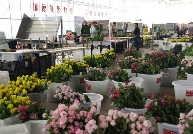 2025年3月24日,工人在雲南麗江現代花卉產業園包裝鮮花。新華社發(梁誌強攝)