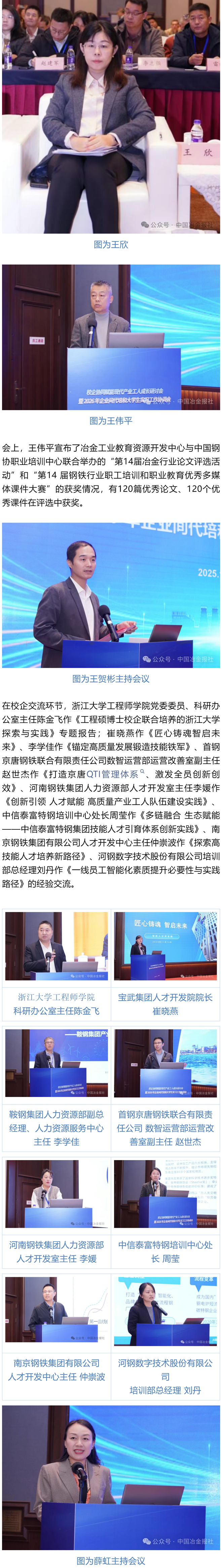 11月13日,在中國鋼鐵工業協會指導下,冶金工業教育資源開發中心、中國鋼協職業培訓中心舉辦的校企協同賦能現代產業工人成長研討會暨2026年企業間代培和大學生實習工作協調會在杭州召開。本次會議以“校企協同賦能現代產業工人成長”為主題,通過主旨報告、經驗分享、交流研討等多種形式,深入探討產業人才成長的現實路徑,推動產教融合,政行企校協同。