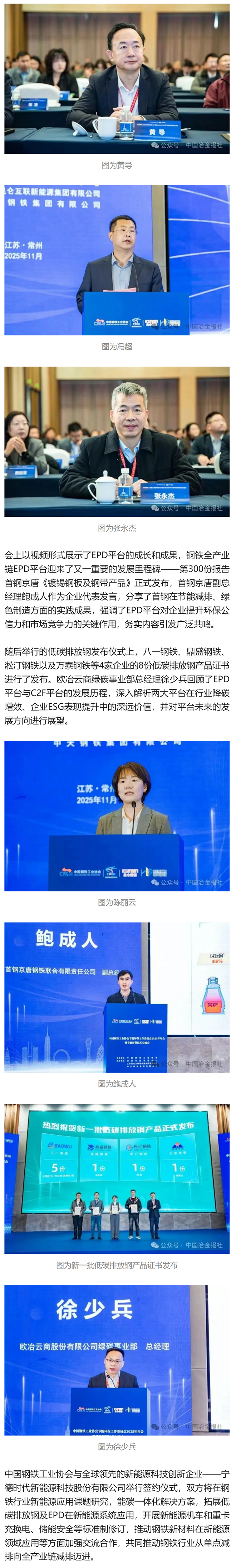 薑維在講話中係統梳理了“十四五”以來鋼鐵行業節能環保工作的三大顯著成效。一是鋼鐵行業在減量發展的“十四五”積累的寶貴經驗,為中國鋼鐵健康可持續發展增添了新的成色。進入“十四五”以來,國內鋼鐵表觀消費量連續4年下降,鋼鐵產量總體呈下降趨勢。其中,國內表觀消費量從2020年10.4億噸的峰值下降到2024年的8.9億噸,下降了1.5億噸,年均下降3.8%;2025年前三季度,國內表觀消費量為6.49億噸,下降5.7%,下降幅度進一步加大。鋼鐵行業積極探索,逐步形成堅持“三定三不要”的行業共識,行業自律意識、能力逐步提升。二是“十四五”鋼鐵行業超低排放攻堅破局取得卓越成果。截至今年10月底,共有219家鋼鐵企業完成或部分完成超低排放改造和評估監測。其中,165家鋼鐵企業完成全工序超低排放改造,涉及粗鋼產能約6.63億噸,噸鋼超低排放改造投資約為447.06元,噸鋼平均環保運行成本約為212.44元;54家鋼鐵企業完成部分工序超低排放改造公示,涉及粗鋼產能約1.88億噸;行業全麵完成超低排放改造的投入已超3100億元人民幣。三是極致能效工程係統挖潛,為節能降本增效做出貢獻。截至目前,四批申報“雙碳最佳實踐能效標杆示範廠”培育企業共143家,涉及產能約7.5億噸,為全行業達到節能目標、實現降本增效起到了積極推動作用。能效標杆示範創建工作得到了行業高度認同和積極參與。截至2025年11月中旬,共21家企業完成極致能效驗收公示,10家企業以“雙碳最佳實踐能效標杆示範企業”進行公示,11家企業以“雙碳最佳實踐能效標杆示範工序/設備”進行公示。2025年底,40家培育企業有望達到國家標杆水平。薑維表示,“十五五”是國家碳達峰的關鍵五年,鋼鐵行業作為傳統產業要積極融入碳市場,加快低碳技術進步,努力實現減汙降碳、節能降耗,努力實現中國鋼鐵低碳轉型和健康可持續發展“雙贏”。