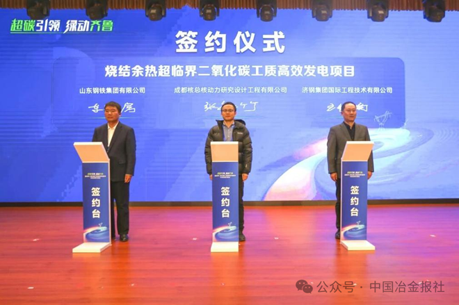 會上舉行了簽約儀式,成都核總核動力研究設計工程有限公司、濟鋼集團國際工程技術有限公司與山東鋼鐵集團有限公司就“燒結餘熱超臨界二氧化碳發電項目”,成都核總核動力研究設計工程有限公司、濟鋼集團國際工程技術有限公司與山東恒信集團就“燃氣發電耦合超臨界二氧化碳發電項目”簽署合作意向協議。