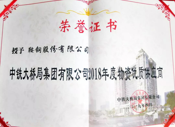 日前,在中鐵大橋局集團有限公司(以下簡稱中鐵大橋局)2018年度物資優質供應商評選中,鞍鋼股份位列其中,成為物質優質供應商。