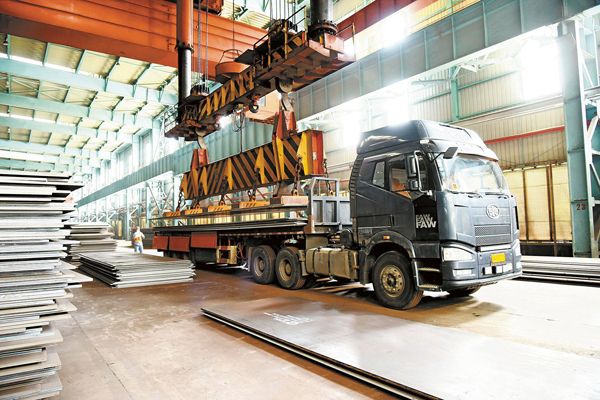 7月2日,山鋼股份萊蕪分公司海洋風電用鋼板正在裝車發貨(如圖)。今年1月~ 6月份,該公司共承接5.2萬噸海洋風電用鋼板的訂單。僅4月份就承接訂單量1.8萬噸,創該產品上半年單月接單量新高。 (特約通訊員 王啟東 攝)