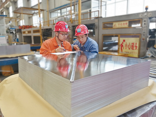 今(jin)年(nian)初(chu)以(yi)來(lai),河(he)鋼(gang)衡(heng)板(ban)加(jia)大(da)客(ke)戶(hu)回(hui)訪(fang)力(li)度(du),定(ding)期(qi)深(shen)入(ru)客(ke)戶(hu)產(chan)線(xian),了(le)解(jie)客(ke)戶(hu)需(xu)求(qiu),及(ji)時(shi)調(tiao)整(zheng)產(chan)品(pin)結(jie)構(gou),不(bu)斷(duan)改(gai)進(jin)裝(zhuang)機(ji)水(shui)平(ping)和(he)工(gong)藝(yi)條(tiao)件(jian)。上(shang)半(ban)年(nian),該(gai)公(gong)司(si)高(gao)端(duan)鍍(du)錫(xi)產(chan)品(pin)直(zhi)銷(xiao)量(liang)同(tong)比(bi)提(ti)升(sheng) 8.91個百分點。圖為7月5日,該公司檢驗人員正在認真抽查馬口鐵盒板尺寸。(牛萬強 攝)