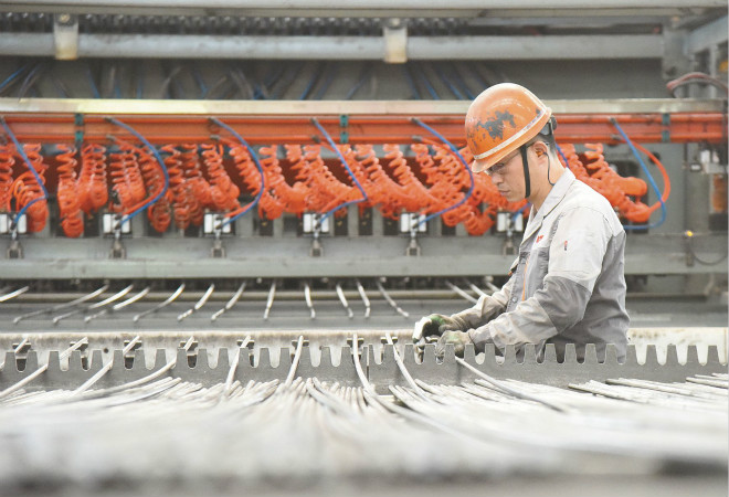 11月20日,馬鋼比亞西公司職工在精心加工具有自主知識產權的鋼筋焊網,兌現高鐵建設領域用戶的訂單(如圖)。今年初以來,該公司依靠優質產品和服務打響比亞西焊網品牌,1月~10月份累計向高鐵用戶提供高鐵用鋼筋焊網5萬噸。 (特約通訊員 胡智慧 攝)