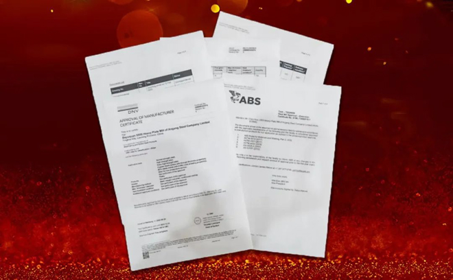 日前,由鞍鋼股份自主研發並生產的熱輸入為600kJ/cm超大線能量、質量等級和屈服強度型號為EH40W的焊接船板用鋼順利通過挪威船級社、英國船級社等多國船級社認證,標誌著鞍鋼集團該級別船板鋼達到世界先進水平。