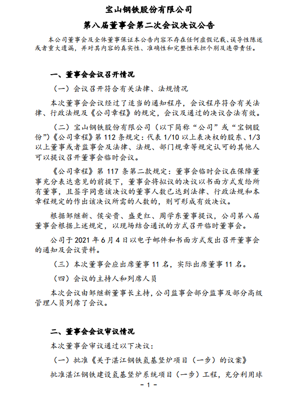 寶鋼股份第八屆董事會第二次會議決議公告