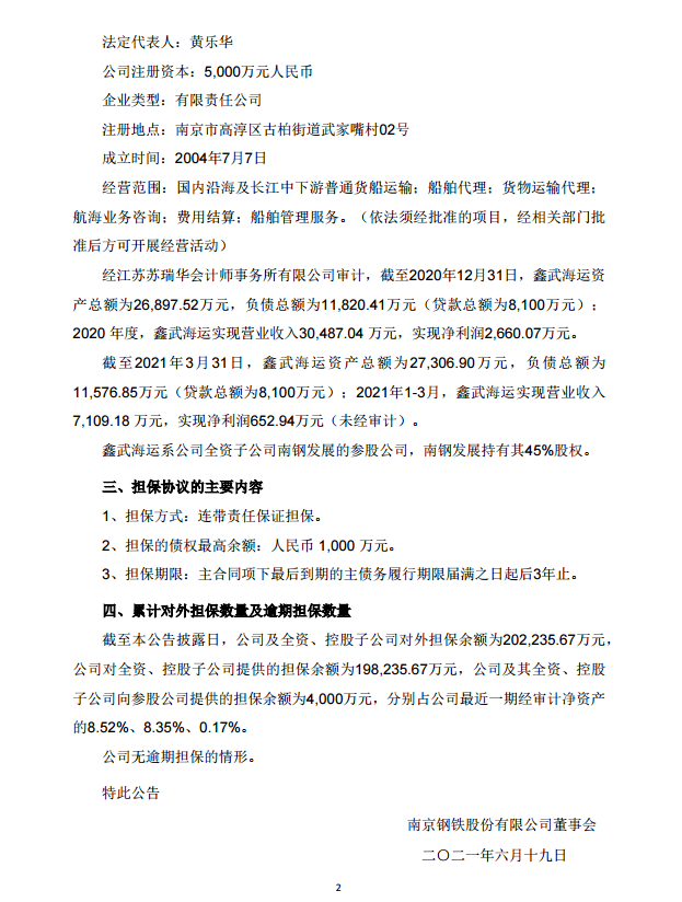 南京鋼鐵股份有限公司關於為參股公司提供擔保的進展情況公告
