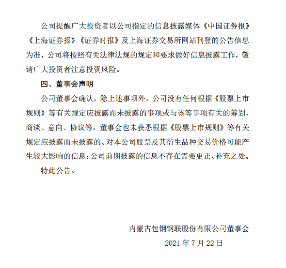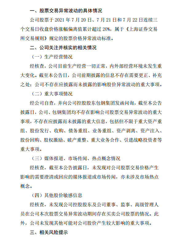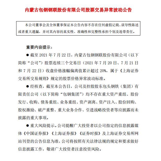 包鋼股份股票交易異常波動公告