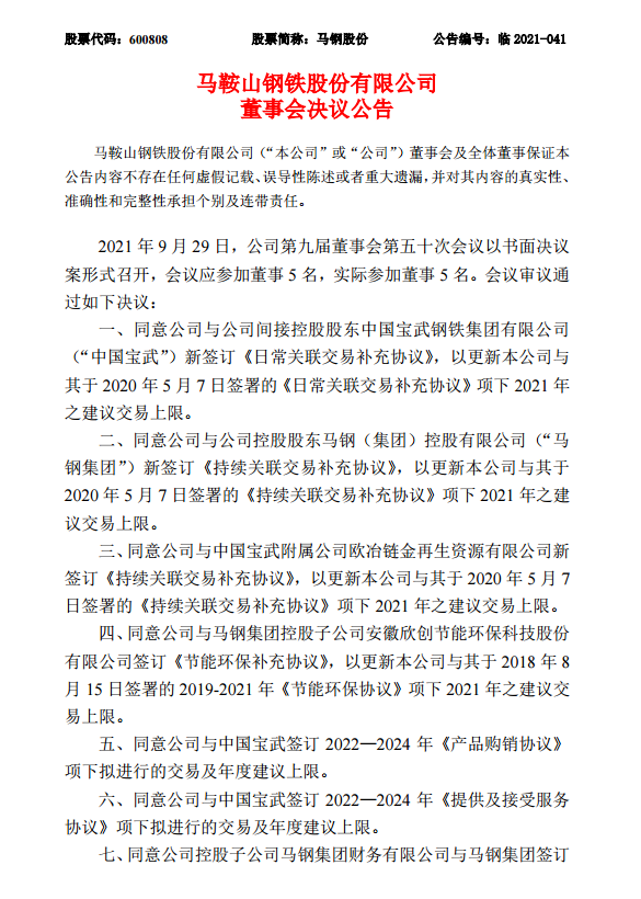 馬鞍山鋼鐵股份有限公司董事會決議公告
