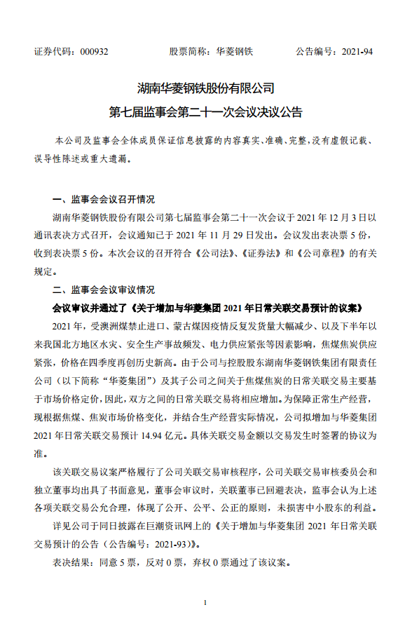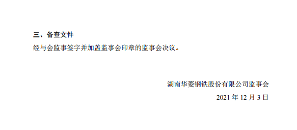 華菱鋼鐵:第七屆監事會第二十一次會議決議公告