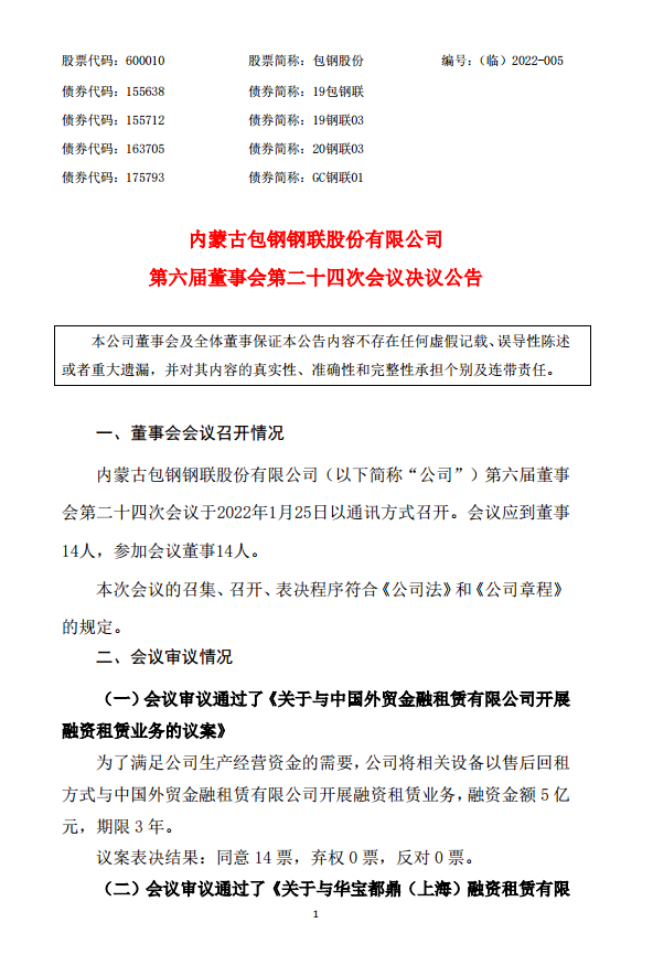 包鋼股份第六屆董事會第二十四次會議決議公告
