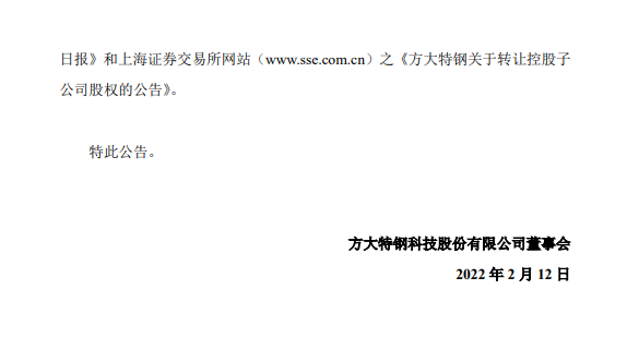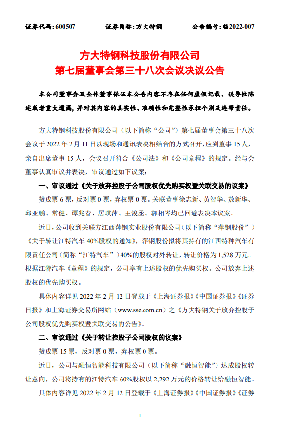 方大特鋼第七屆董事會第三十八會議決議公告