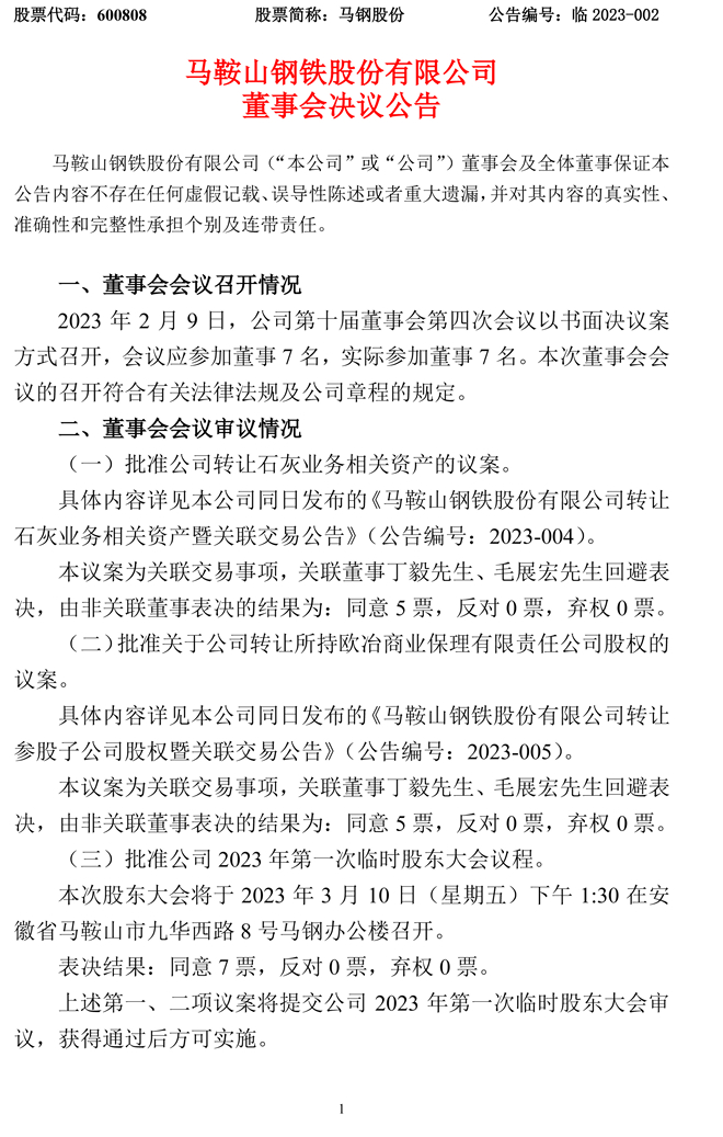 馬鋼股份:馬鞍山鋼鐵股份有限公司董事會決議公告