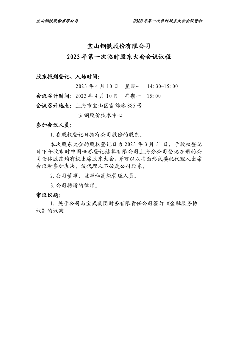 寶鋼股份:寶鋼股份2023年第一次臨時股東大會會議資料