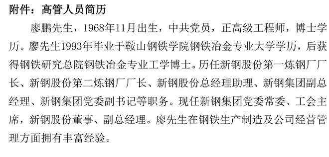新鋼股份:新鋼股份關於高級管理人員調整的公告