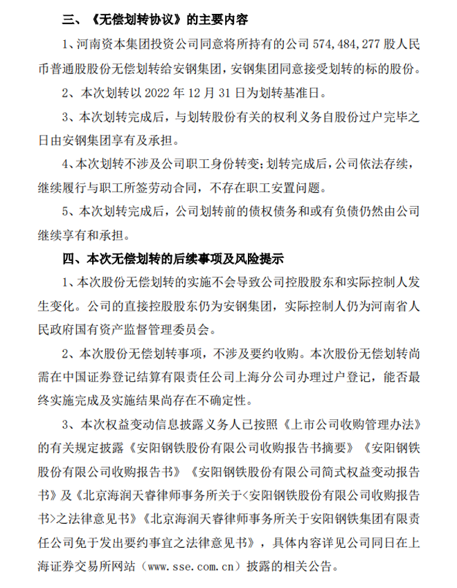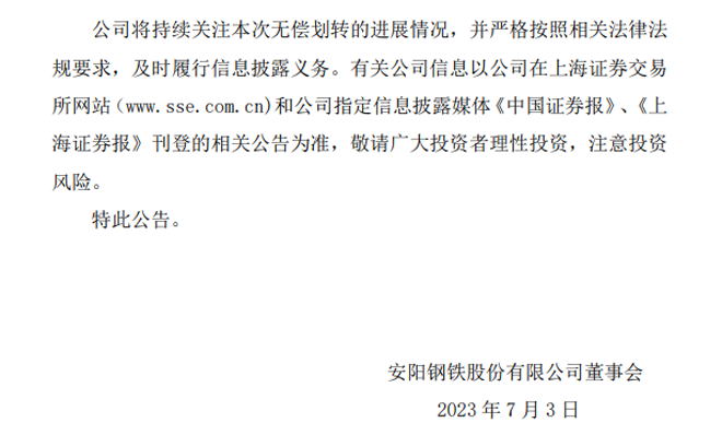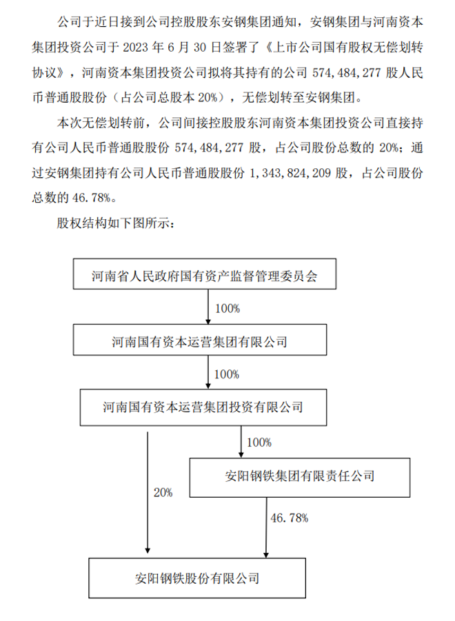 安陽鋼鐵:安陽鋼鐵股份有限公司關於國有股份無償劃轉的進展公告