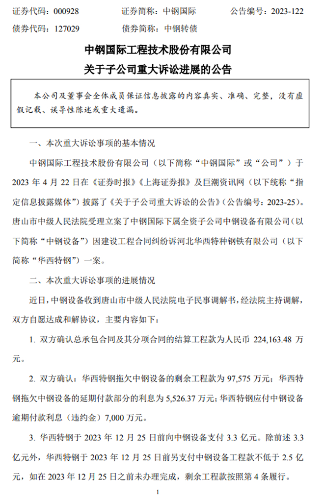 中鋼國際:關於子公司重大訴訟進展的公告