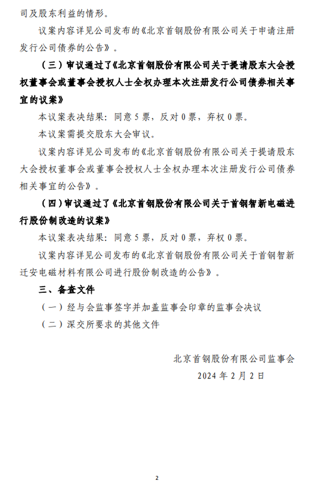 首鋼股份:北京首鋼股份有限公司八屆四次監事會會議決議公告