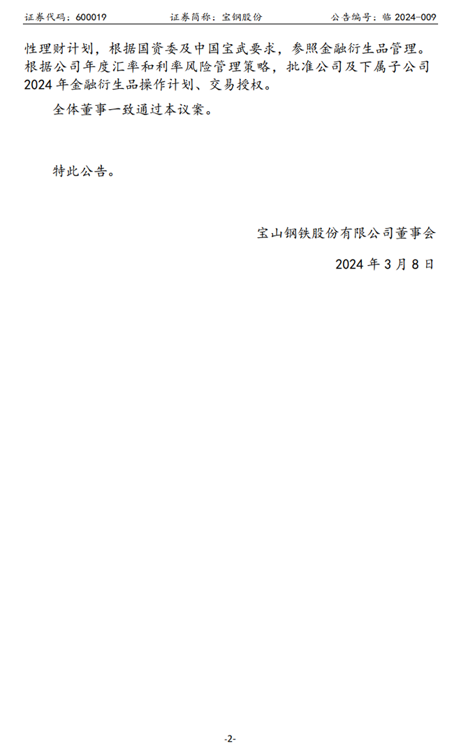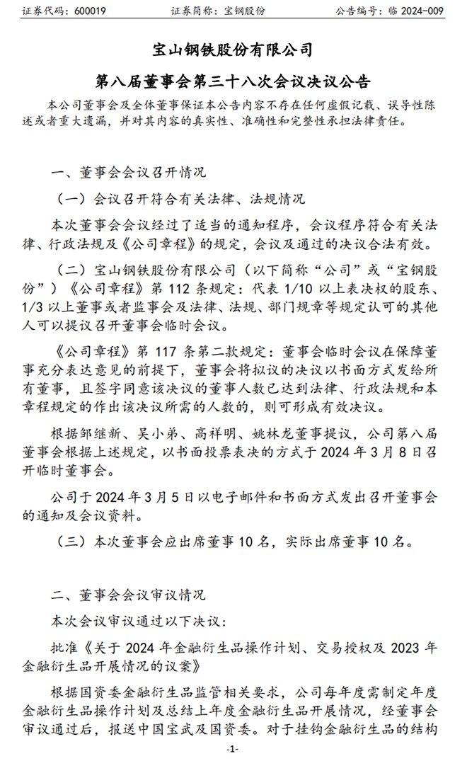 寶鋼股份:寶鋼股份第八屆董事會第三十八次會議決議公告