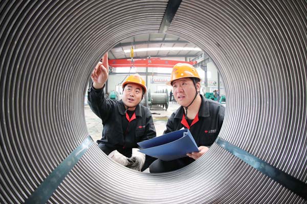 今年初以來,山鋼集團濟鋼合金科技公司組織技術攻關小組,細化分解生產工藝流程,進一步完善脫氧鋁線產品的生產標準,順利於5月份完成1301噸的生產目標任務,且產品質量保持穩定。圖為該公司職工正在檢查鋁線產品質量。 (特約通訊員 李建輝 通訊員 李鵬 攝)