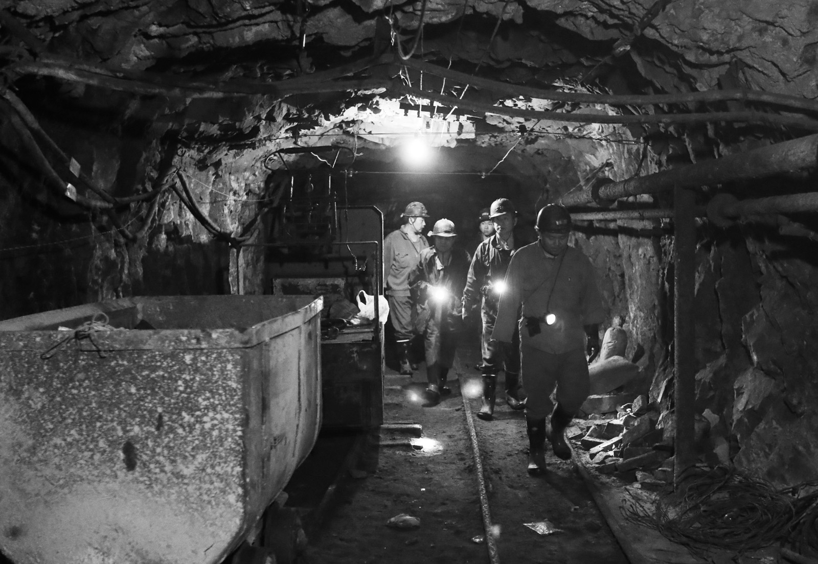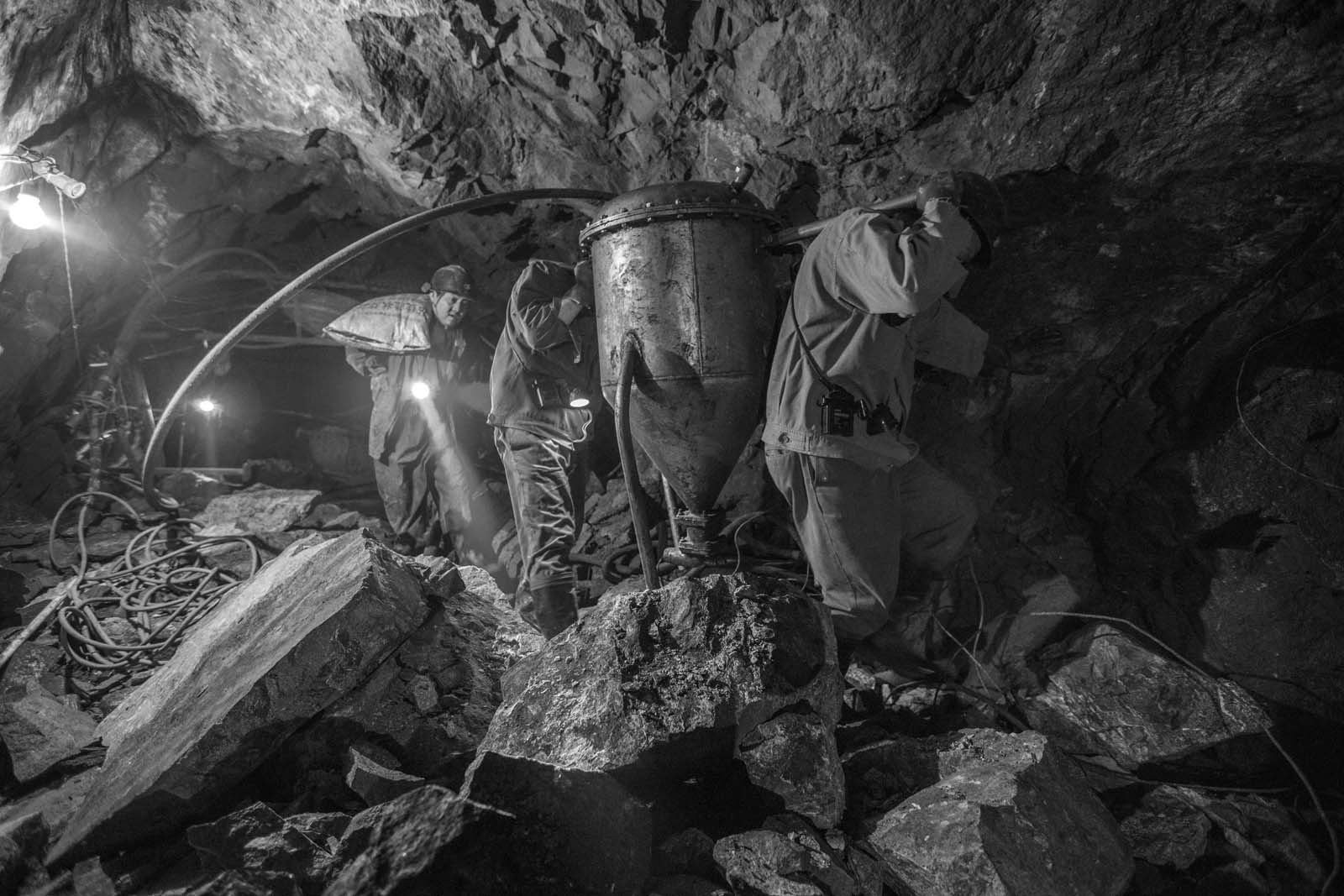 一大早,爆破工們就開始下到礦井,趕赴當天需要爆破的地點。