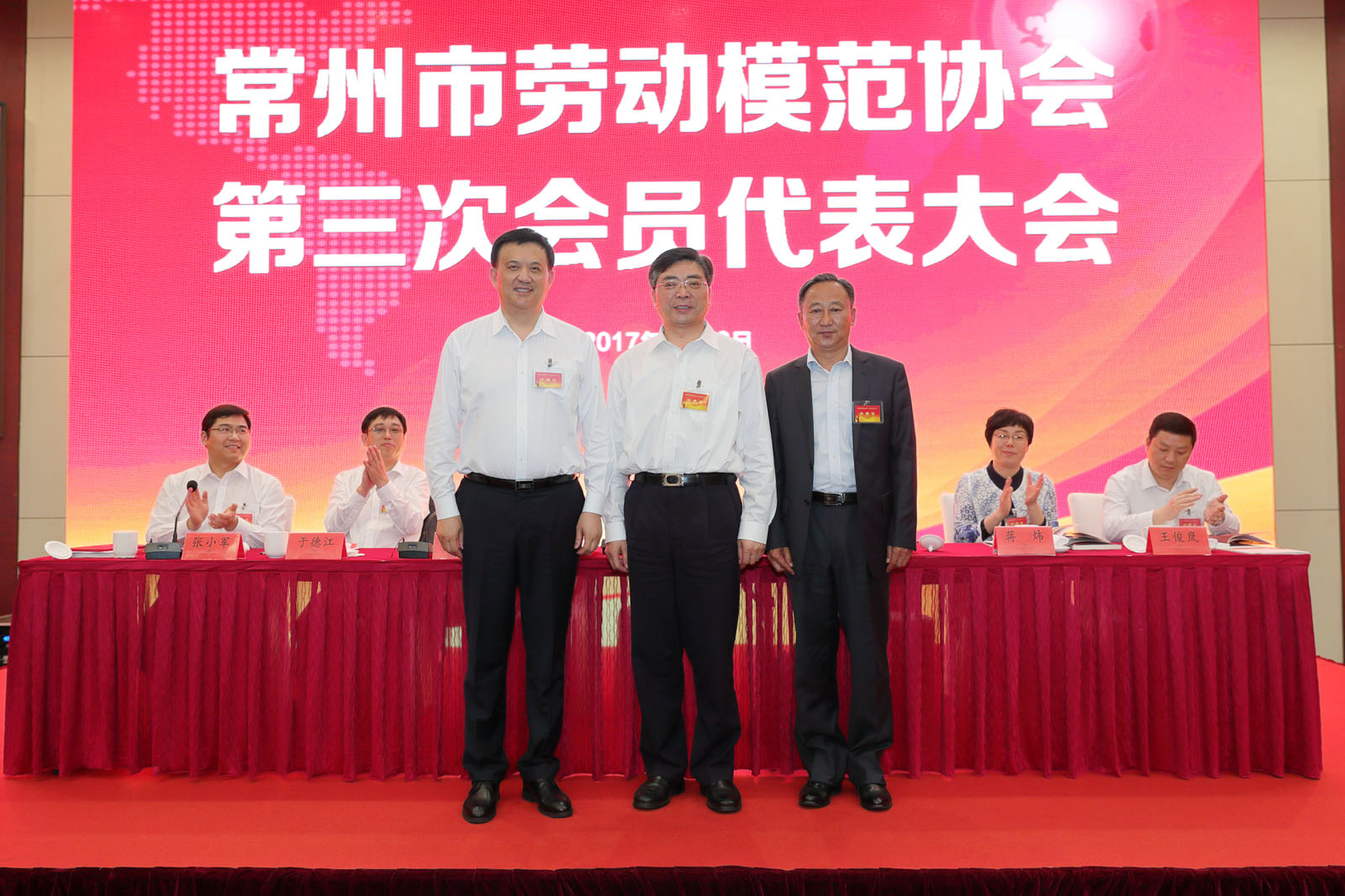 日前,常州市召開勞動模範協會第三次會員代表大會,中天鋼鐵集團有限公司董事局主席、總裁、黨委書記董才平當選新一屆會長。據悉早在1996年,董才平被授予武進市勞動模範光榮稱號;2001年被授予江蘇省勞動模範光榮稱號;2010年4月,董才平當選為全國勞動模範。圖為董才平與協會領導合影。(陳明 攝)