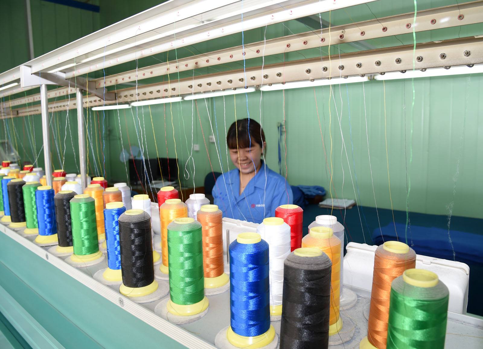 5月21日是“全國助殘日”。太鋼福利總廠作為全國百強福利企業和殘疾人福利工廠,近年來服務領域涉及工業用品、化工產品、勞保用品、加工貿易等方麵。2016年,該廠實現營業收入4.68億元,實現利稅2351萬元,全廠600多名殘疾職工人均收入達到3.19萬元。圖為太鋼福利總廠職工在進行服裝刺繡作業。(特約通訊員 王旭宏 攝)