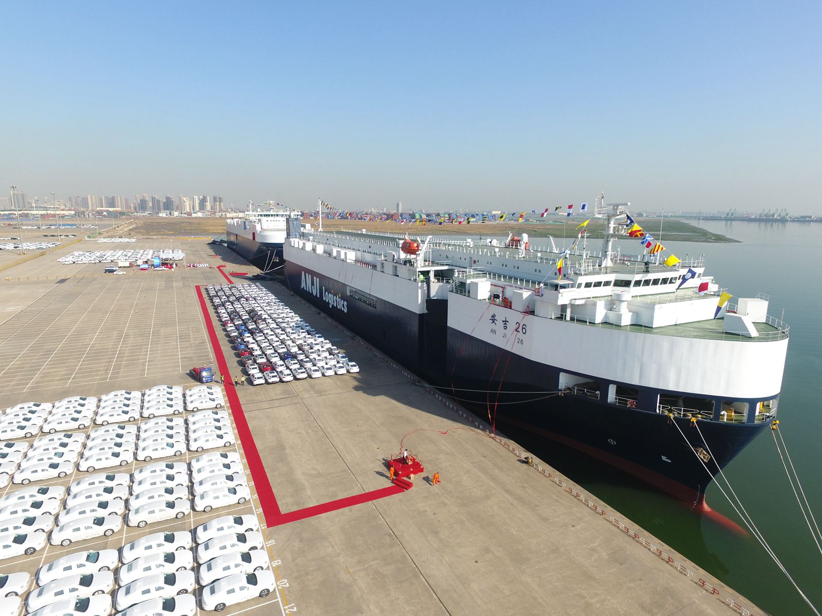 新型汽車運輸船在天津港首航