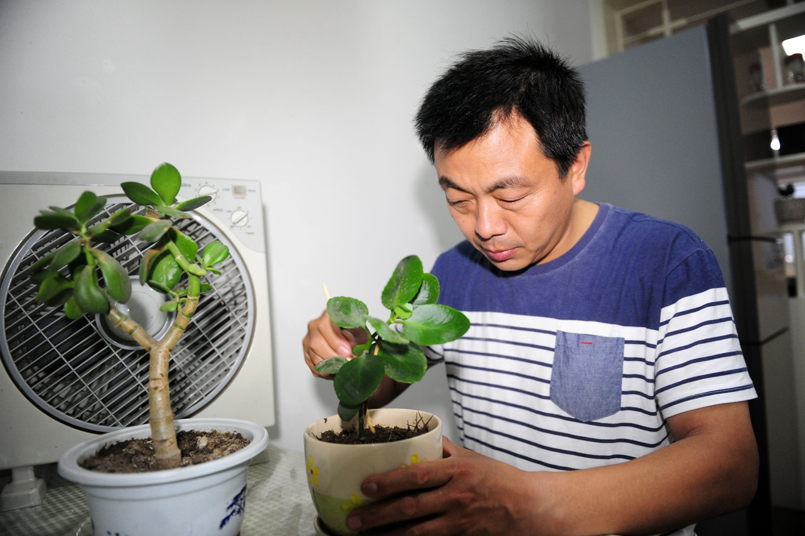 圖八:操作世界最先進的設備,加工的活件尺寸公差控製在0.3mm以內,相當於一根頭發絲粗細,工作壓力可想而知,隻有看看自己親手種的小花是劉新安一天中最放鬆的時間。
