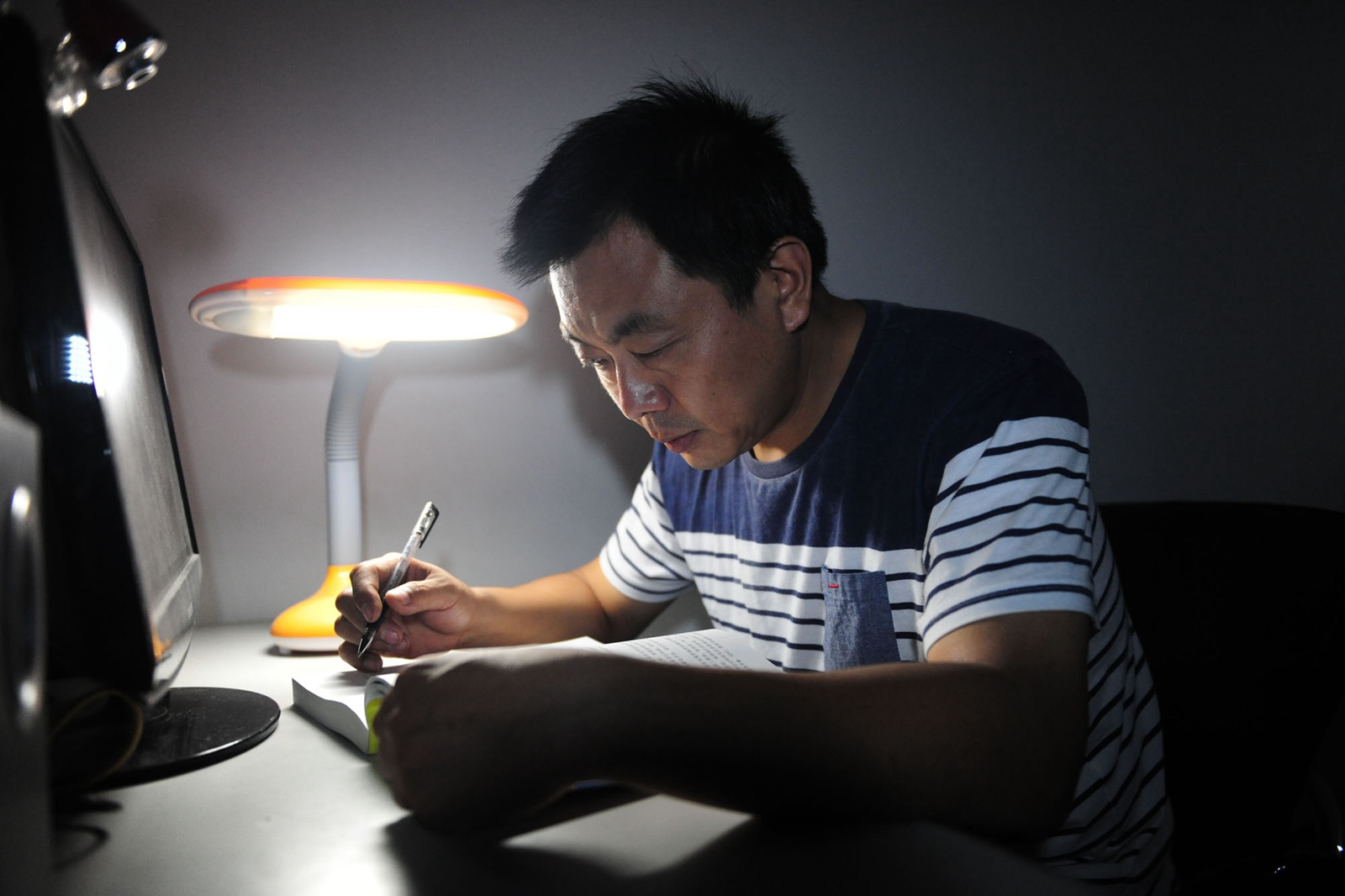 圖八:夜深人靜的時候,劉新安仍舊堅持加強政治和業務學習。